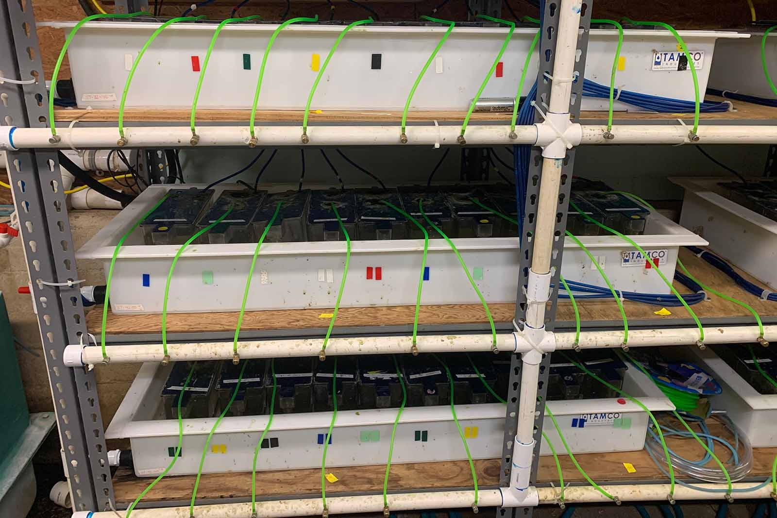 Des systèmes de recirculation sont utilisés à l'AWCC pour propager les moules d'eau douce. Ces systèmes comportent des réservoirs avec des entrées et sorties individuelles. Les poissons hôtes infectés par les larves de moules sont maintenus dans des réservoirs. L'eau qui s'écoule est filtrée pour recueillir les juvéniles après qu'ils se soient détachés du poisson hôte, puis elle est filtrée et pompée à nouveau dans le système. Différents types de systèmes ont été conçus et développés par le personnel de l'AWCC pour accueillir des poissons de différentes tailles et reproduire leurs besoins en matière d'habitat. Ces systèmes sont conçus pour permettre la propagation de plus d'une espèce par système à la fois, ce qui permet la production de plus de 20 espèces uniques chaque année.