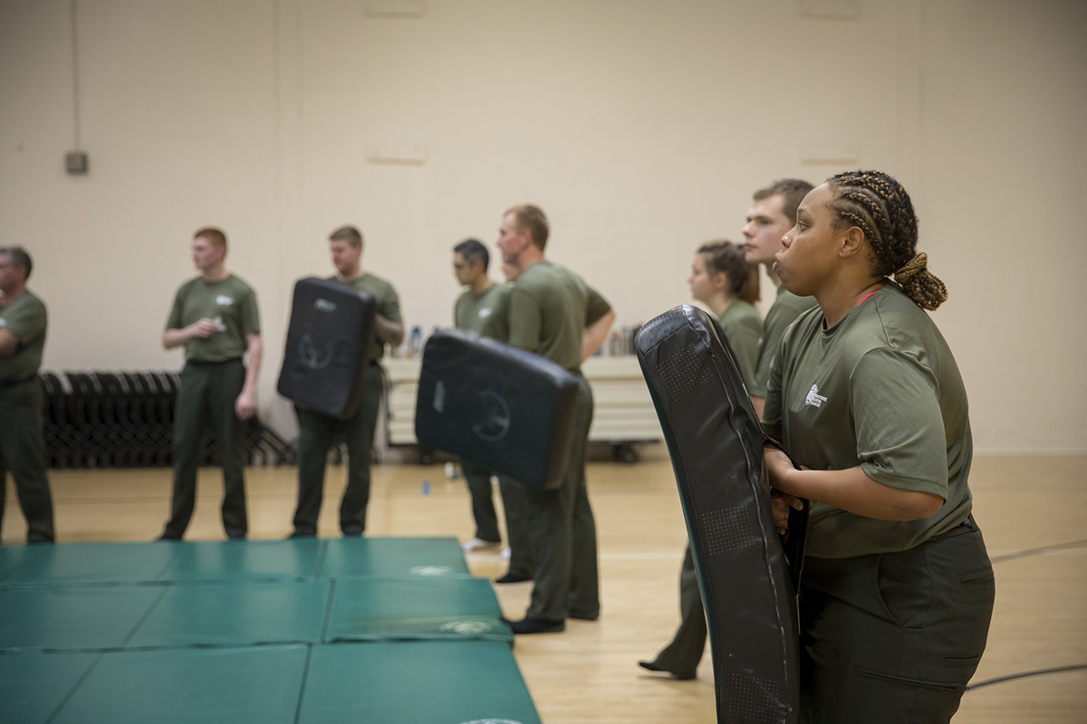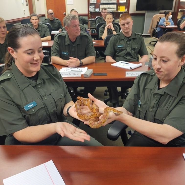 Les recrues viennent de terminer la semaine 4 de formation ! Au cours des deux dernières semaines, l'accent a été mis sur les tactiques défensives. Les recrues apprennent les tactiques de désescalade, les procédures d'arrestation, les techniques de contrôle des mains, l'utilisation d'armes moins meurtrières et les techniques d'autodéfense, entre autres exercices. Une fois sur le terrain, ces futurs agents travaillent généralement seuls, où presque toutes les personnes qu'ils rencontrent sont armées. Nos agents de la police de la conservation sont d'excellents communicateurs et ont mis en œuvre des techniques de désescalade bien avant que l'industrie ne se concentre sur cette formation.