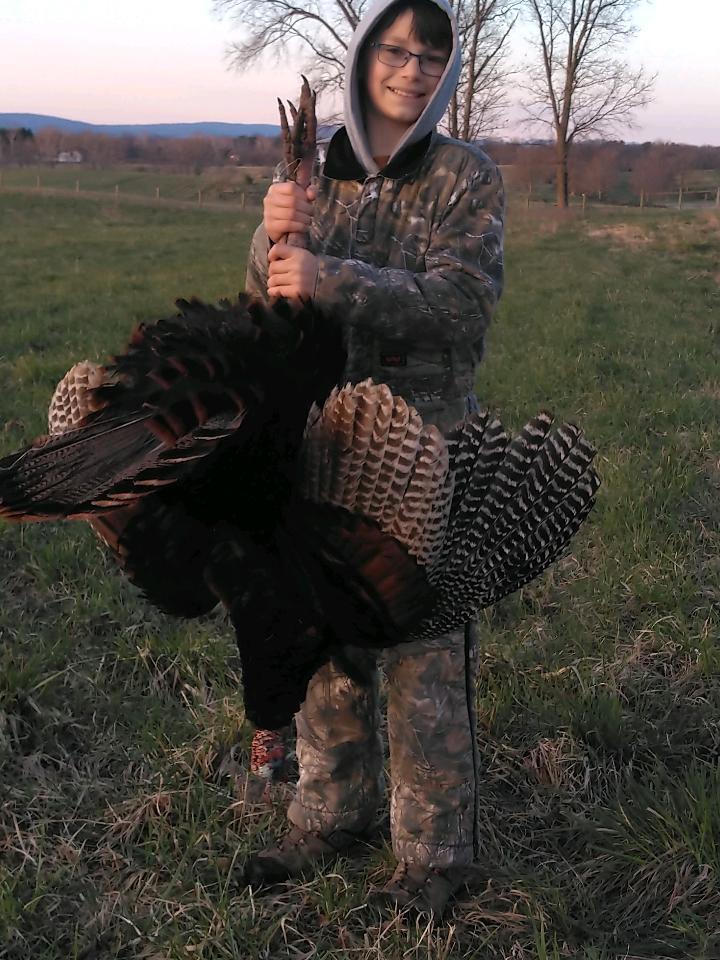 L'apprenti chasseur Nathan Wolford, de Big Rock, en Virginie, est un homme de 41ans qui a des besoins particuliers. Nathan lit sur la chasse et regarde des émissions de chasse depuis de nombreuses années. L'automne dernier, il a demandé à Leon Boyd, membre du conseil d'administration du DWR, s'il pouvait aller chasser le cerf. Après avoir obtenu l'accord de la mère de Nathan, Leon a immédiatement commencé à travailler dans ce sens. Les six derniers mois ont été marqués par de nombreuses "premières" pour Nathan. Nathan a tiré pour la première fois avec une arme à feu, a conduit un véhicule pour la première fois, a grimpé dans un mirador pour la première fois. Et oui, Nathan a abattu son premier cerf l'automne dernier, un mâle. Fort de la confiance nouvellement acquise grâce à ces succès, Nathan a voulu tenter de capturer un dindon. Les mentors de chasse de Nathan, Justin et Logan Boyd, lui ont offert un costume camouflage pour son anniversaire il y a quelques semaines. Le week-end dernier, ils l'ont emmené à la chasse au coq de bruyère au printemps. Cachés dans un affût portatif au sol, les chasseurs ont attendu qu'un coq de bruyère s'approche de leurs leurres et de leurs appeaux. Plusieurs gobblers ont répondu à l'appel, et comme les gobblers restaient très proches les uns des autres, il fallait faire des efforts considérables pour attendre une occasion de tirer proprement sur un seul gobler. Heureusement, une opportunité s'est présentée et Nathan a pu attraper son premier dindon, un magnifique dindon de printemps.