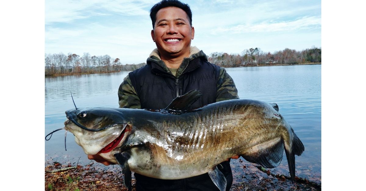 Khanh Nguyen et un poisson-chat qu'il a attrapé.