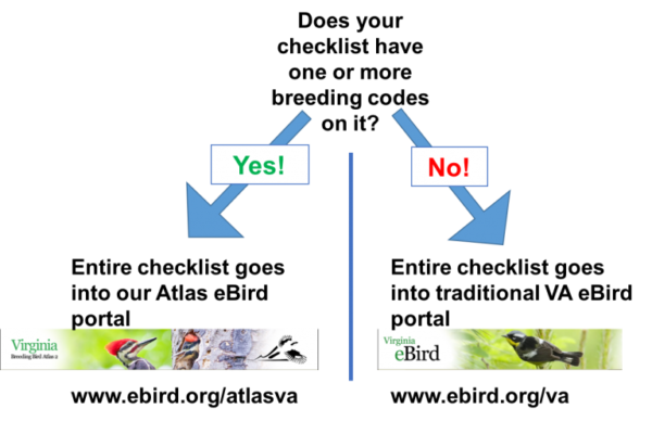 Rappelez-vous que même si le portail eBird de Virginie accepte les codes de reproduction dans le cadre de son système global, les observations de l'Atlas ne doivent pas y être saisies. Ils ne seront pas liés au système de blocs unique de l'atlas ni intégrés dans les résultats de l'atlas spécifiques à la Virginie. Cela signifie que toutes les données importantes que vous avez collectées seront perdues pour ce projet.