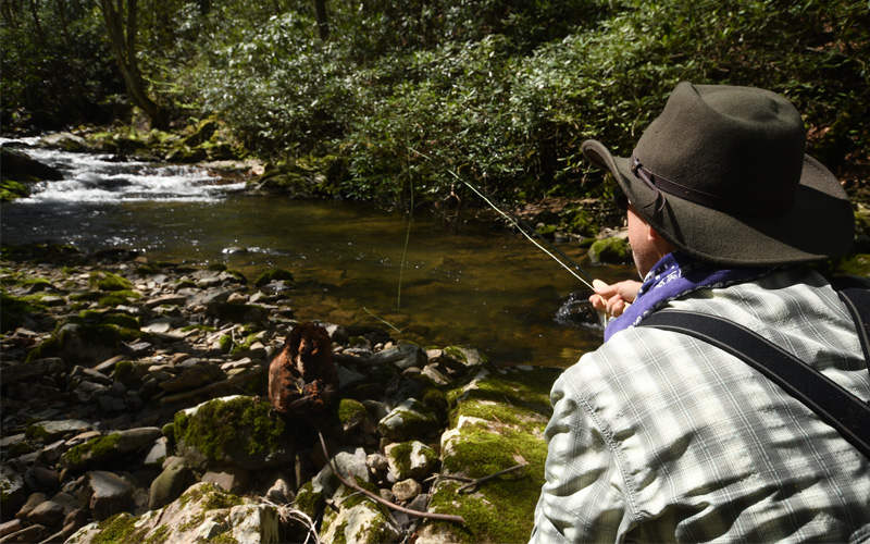 Pêche à la truite en été à l'ombre du Mont Rogers