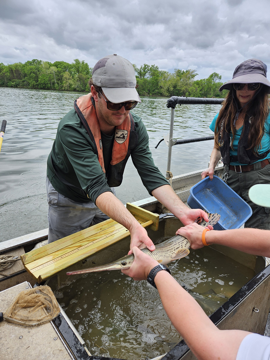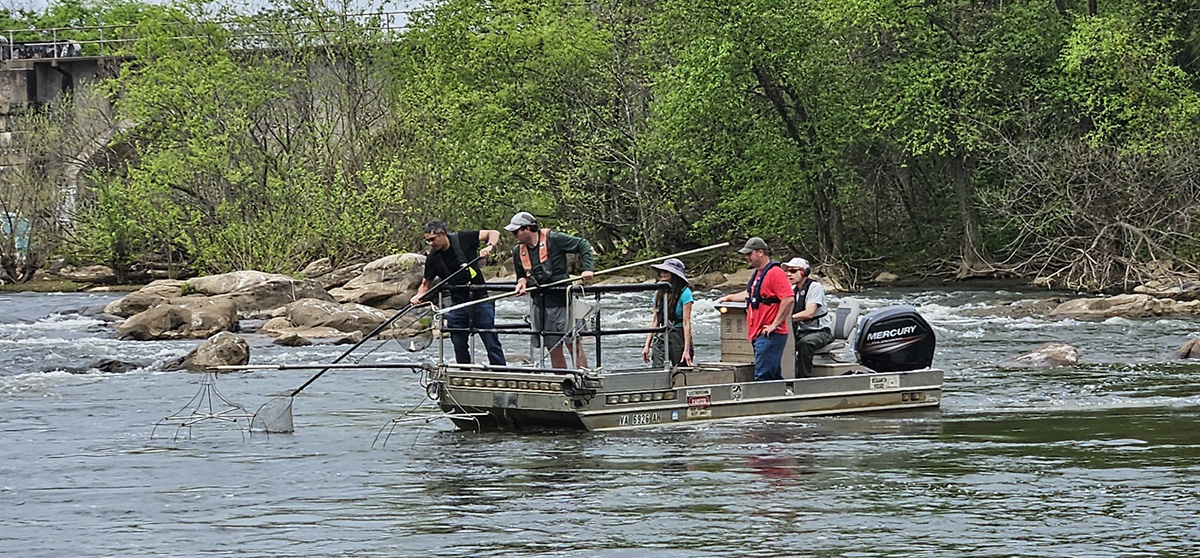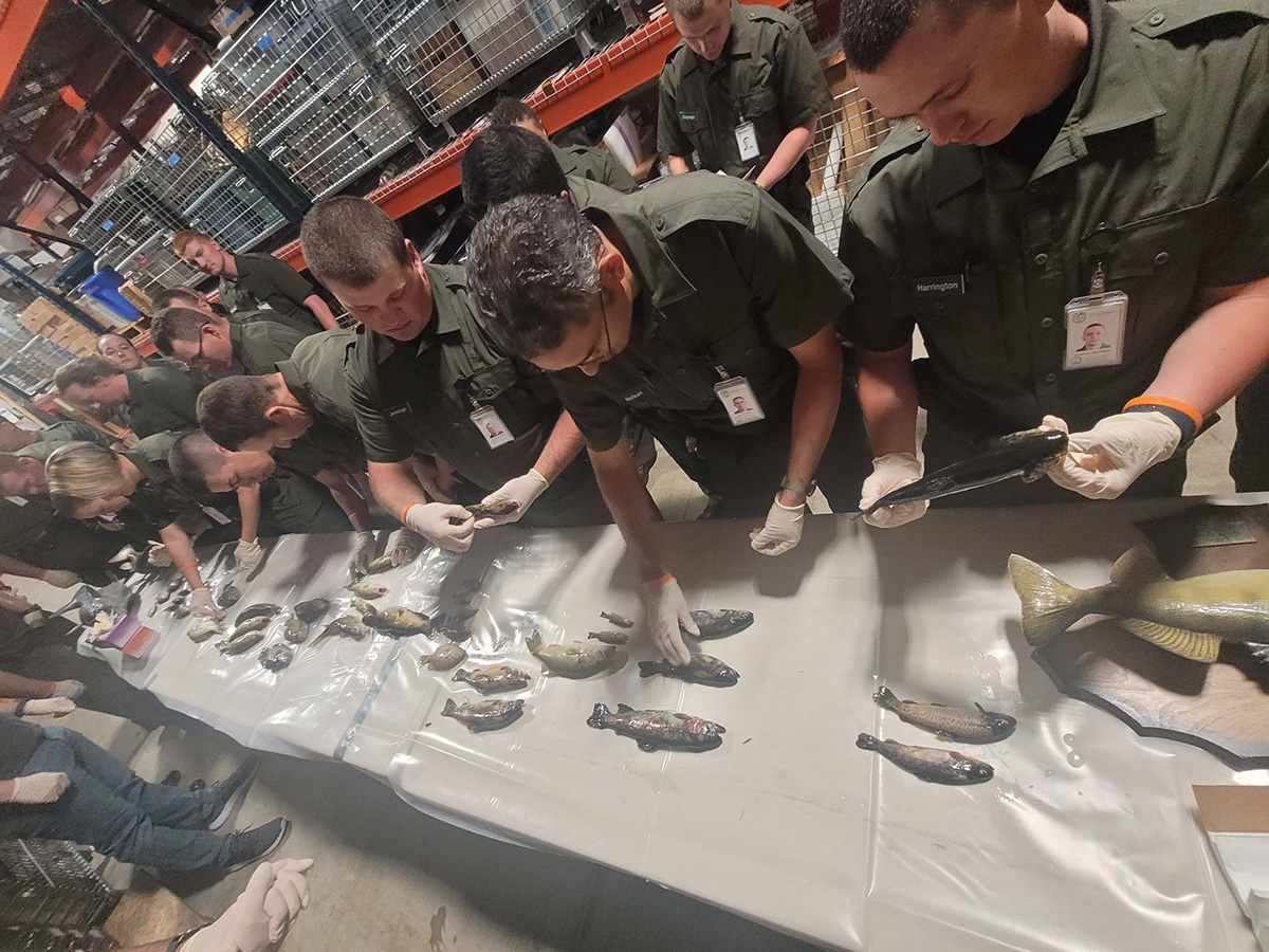 Les recrues ont également passé deux jours à apprendre l'identification des poissons d'eau douce et d'eau salée, à la fois en classe et sur le terrain. L'académie de formation s'est associée à la division aquatique du DWR pour permettre aux recrues d'acquérir de l'expérience sur le terrain en matière d'identification des poissons. Les recrues ont rejoint la division aquatique du DWR sur la rivière James pour effectuer des chocs, des échantillonnages et l'identification des poissons anadromes qui migrent dans la rivière. Actuellement, c'est la saison du frai pour l'alose et le bar rayé dans la rivière James. Les recrues ont pu observer de première main la collecte des données et la manière dont les biologistes surveillent la santé des populations de poissons dans tout l'État.