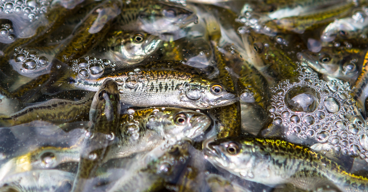 F1 alevins d'achigan à grande bouche.