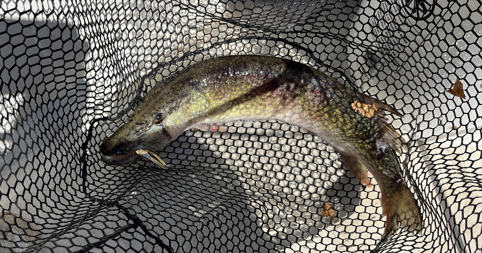 Un bar ? Non, la façon dont le poisson nageait donnait l'impression qu'il avait une certaine longueur de corps. Bouleau ? Peut-être, mais probablement pas assez lourd. Ce n'est donc pas une grande surprise lorsqu'un doré jaune ( 22) apparaît à côté du bateau, la cuillère en or serrée dans ses mâchoires dentées. Il est resté dans le filet assez longtemps pour prendre une photo avant d'être relâché rapidement.