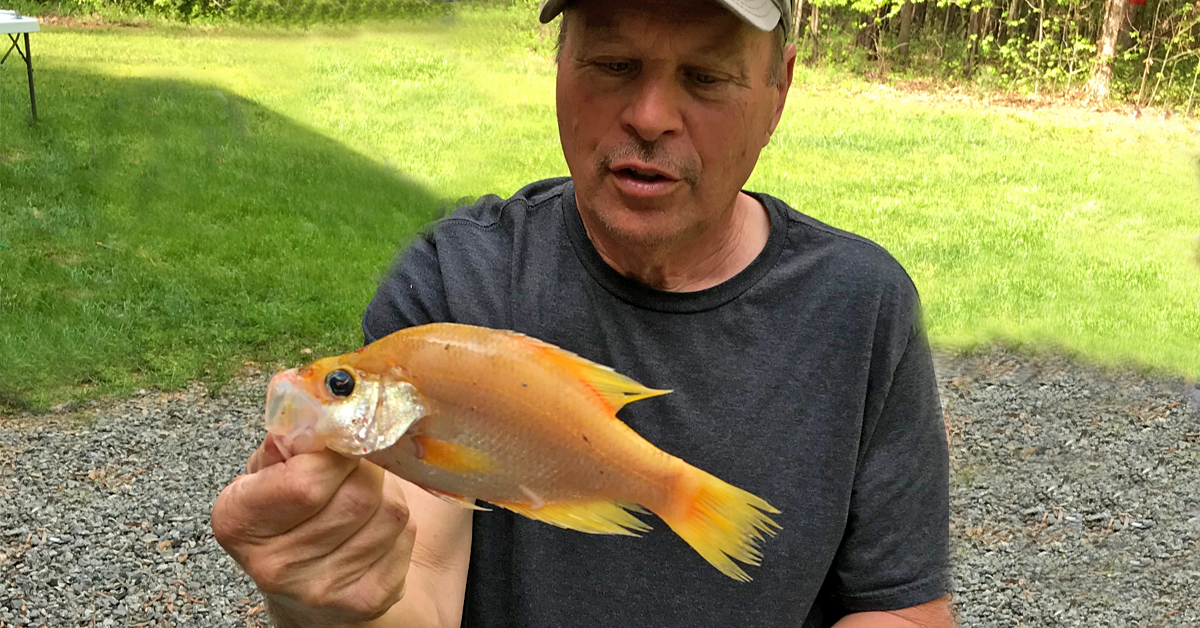 Un pêcheur chanceux a remonté une prise inhabituelle sur le célèbre lac Buggs Island en Virginie. Le dimanche de Pâques, 12, David Rathburn, de Staunton, n'en revenait pas du poisson doré qui nageait au bout de sa ligne. Rathburn avait déjà attrapé 15 crappie cet après-midi-là en pêchant avec un Kalin grub sur un 1/8 oz. tête de turlutte.