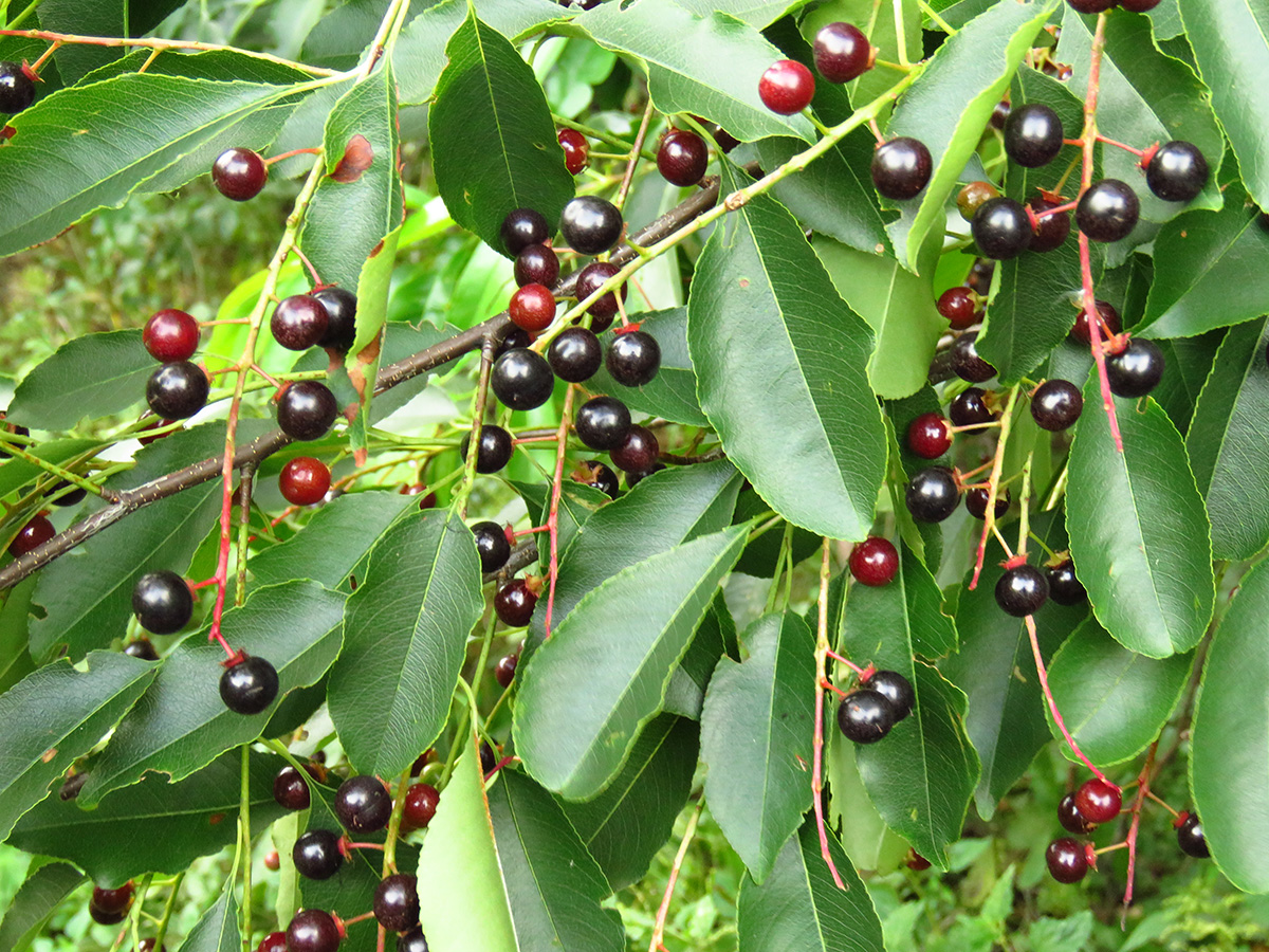 Le cerisier noir(Prunus serotina) est une plante indigène précieuse souvent négligée. Cette plante est répandue dans toute la Virginie et se trouve peut-être déjà dans votre jardin. Cet arbre de taille petite à moyenne pousse relativement vite et se trouve généralement en lisière de forêt en tant qu'arbre de sous-bois. Des grappes de petites fleurs blanches s'ouvrent au début du printemps et attirent les pollinisateurs comme les mouches et les abeilles.