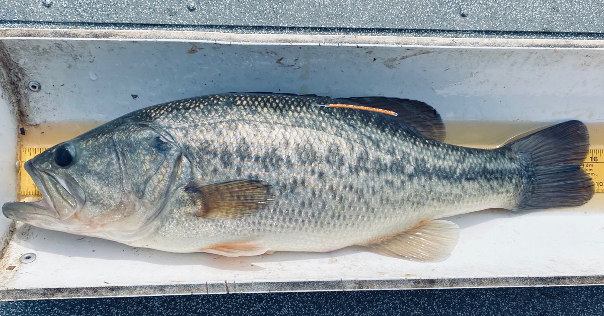 Un achigan à grande bouche marqué. Photo avec l'aimable autorisation du Département des ressources naturelles du Maryland
