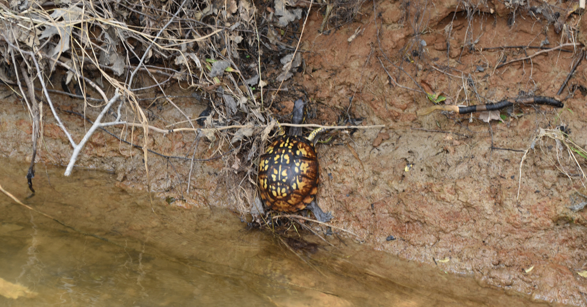 L'un des événements les plus fascinants dont j'ai été témoin en plein air s'est produit il y a quelques années sur le cours supérieur de la rivière Rappahannock. En pagayant dans un courant rapide, j'ai observé une tortue-boîte (à quelques centimètres au-dessus de l'eau) qui s'accrochait à une berge de terre abrupte. Si le reptile avait perdu sa prise, il aurait sans doute été emporté et aurait péri.
