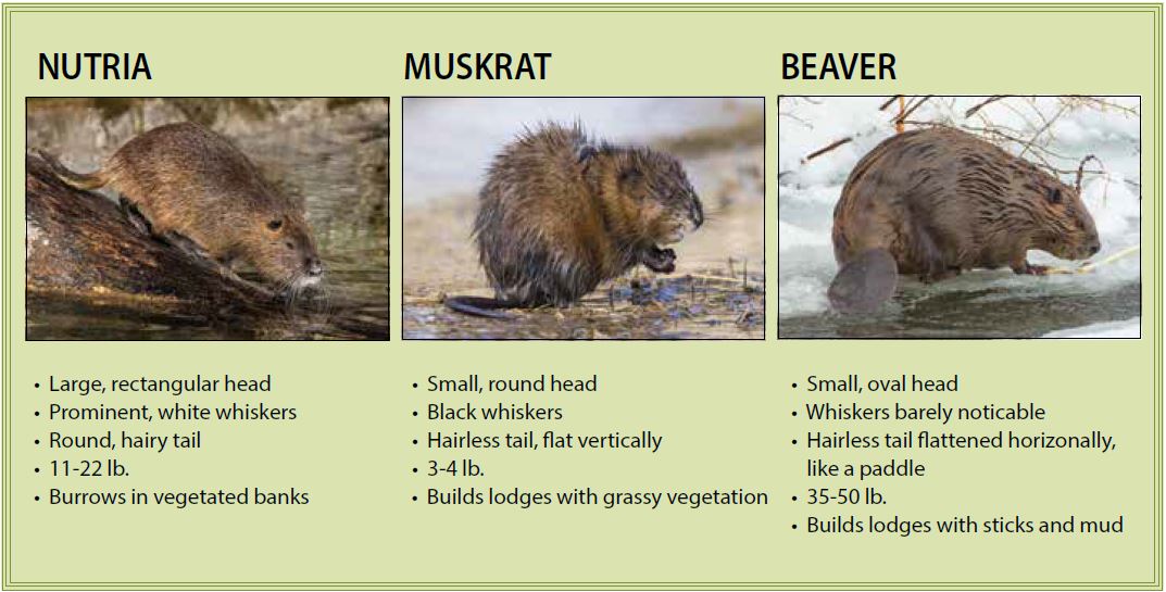 Les nutrias sont de gros rongeurs semi-aquatiques envahissants. Couverts de fourrure, avec une queue de rat et des pieds palmés, ils ressemblent au rat musqué indigène, mais ils sont beaucoup plus gros et beaucoup plus destructeurs. Avec leurs grandes dents orange, semblables à celles du castor, les ragondins mangent à peu près toutes les plantes qui poussent dans les marais. Une fois établies, elles sont capables de faucher et de creuser chaque acre disponible de magnifiques paysages de zones humides, les transformant ainsi en taches de boue nues qui, avec le temps, s'érodent jusqu'à devenir de l'eau libre.