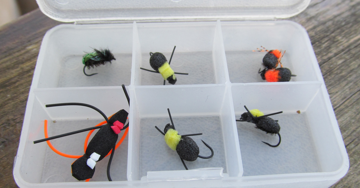 Plus d'un million d'espèces d'insectes terrestres ont été identifiées, dépassant en nombre les insectes aquatiques de 20 à 1. Ne vous inquiétez pas. Il suffit de quelques imitations éprouvées d'insectes terrestres dans vos boîtes à mouches pour réussir la pêche terrestre. Les trois principales espèces à stocker sont les sauterelles, les fourmis et les coléoptères. Ajoutez des grillons, des cicadelles et des vers de terre si vous voulez allonger la liste.