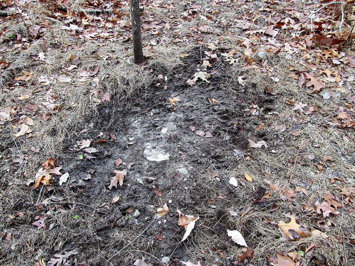 Les sentiers sont plus faciles à voir lorsque les feuilles sont tombées et qu'ils ont été foulés tout au long de l'automne et de l'hiver. Recherchez les endroits où les rayons des pistes partant des zones d'alimentation rejoignent des chemins plus importants à l'approche des zones de litière. Recherchez également les pistes aux contours fins où les gros mâles peuvent se déplacer dans un couvert plus épais 30-80 yards sur le côté des principales voies de déplacement utilisées par les femelles et les petits mâles.