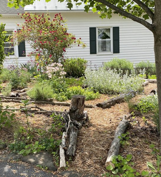 Des tas de broussailles parsèment notre maison. Je les appelle des terriers de troglodytes, car les troglodytes les adorent. L'asclépiade est autorisée à pousser ainsi que la verge d'or et d'autres plantes que les gens enlèvent souvent. Nous utilisons du paillis pour nous aider à contrôler quelque peu les indésirables, environ 30 yards de paillis chaque année. Je me préoccupe moins de la façon dont les humains perçoivent nos jardins que de la façon dont la faune les perçoit. Nous avons de la sauge qui pousse à environ 4' de hauteur et qui tombe ensuite sous son propre poids. Pour l'œil humain, il peut sembler mal entretenu, mais nous n'avons reçu aucune plainte de la part des multitudes de pollinisateurs qui le visitent chaque été !