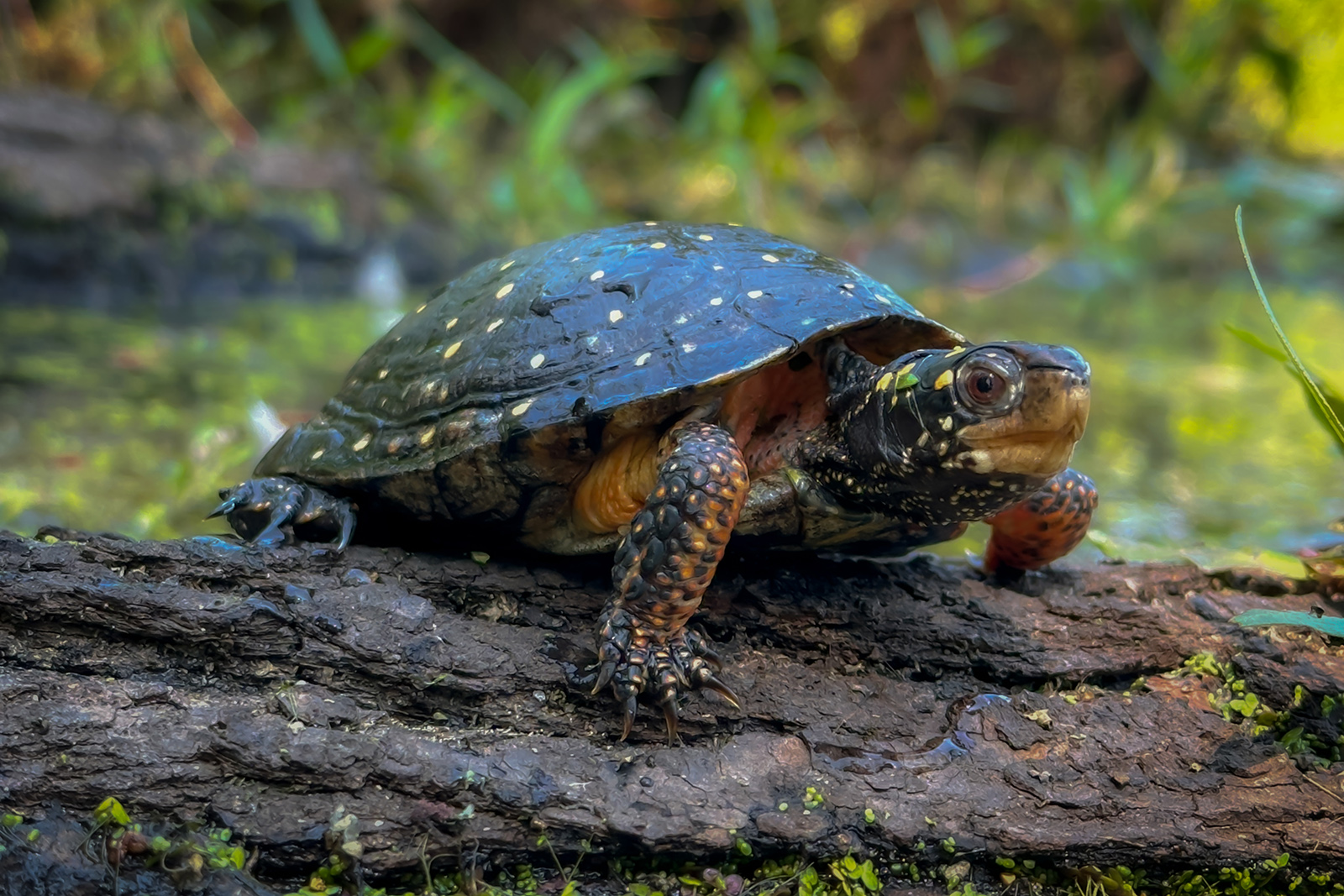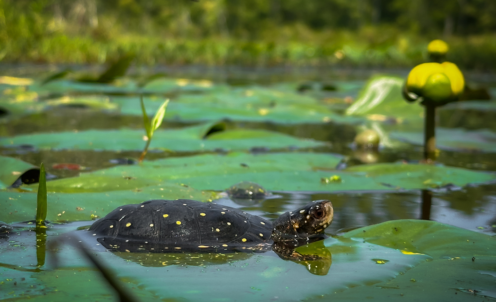 Selon M. Kleopfer, les tortues ponctuées, une espèce dont la conservation est particulièrement nécessaire en Virginie, sont très prisées des collectionneurs d'animaux de compagnie qui les braconnent et les envoient ensuite à l'étranger pour y être vendues. "Elles sont petites, elles sont voyantes et ce sont des tortues sympathiques", a déclaré M. Kleopfer. "Malheureusement, la plupart des zones ciblées sont des terres publiques, comme les refuges, car c'est là que l'on trouve probablement les populations de tortues ponctuées les plus saines, les plus importantes et les plus robustes. Malheureusement, c'est sur les terres publiques que l'on rencontre le plus d'activités illégales. Il est assez facile de se promener avec un sac à dos, et personne n'y réfléchira à deux fois. En revanche, sur les terrains privés, c'est une autre histoire".