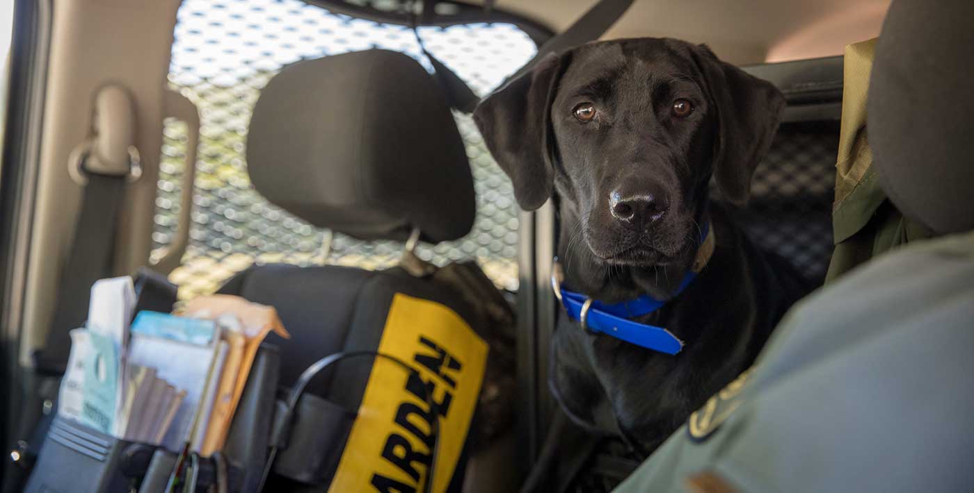 Les agents de la police de la conservation du DWR avaient besoin de quelques bons chiens et, après avoir cherché partout, ils ont trouvé deux chiots exceptionnels. K9 'Sky' et K9 'Bailey' sont toutes deux des femelles labs noirs. Ils ont été sélectionnés parmi des centaines de candidats potentiels pour leur intelligence, leur énergie et leur forte envie de jouer.