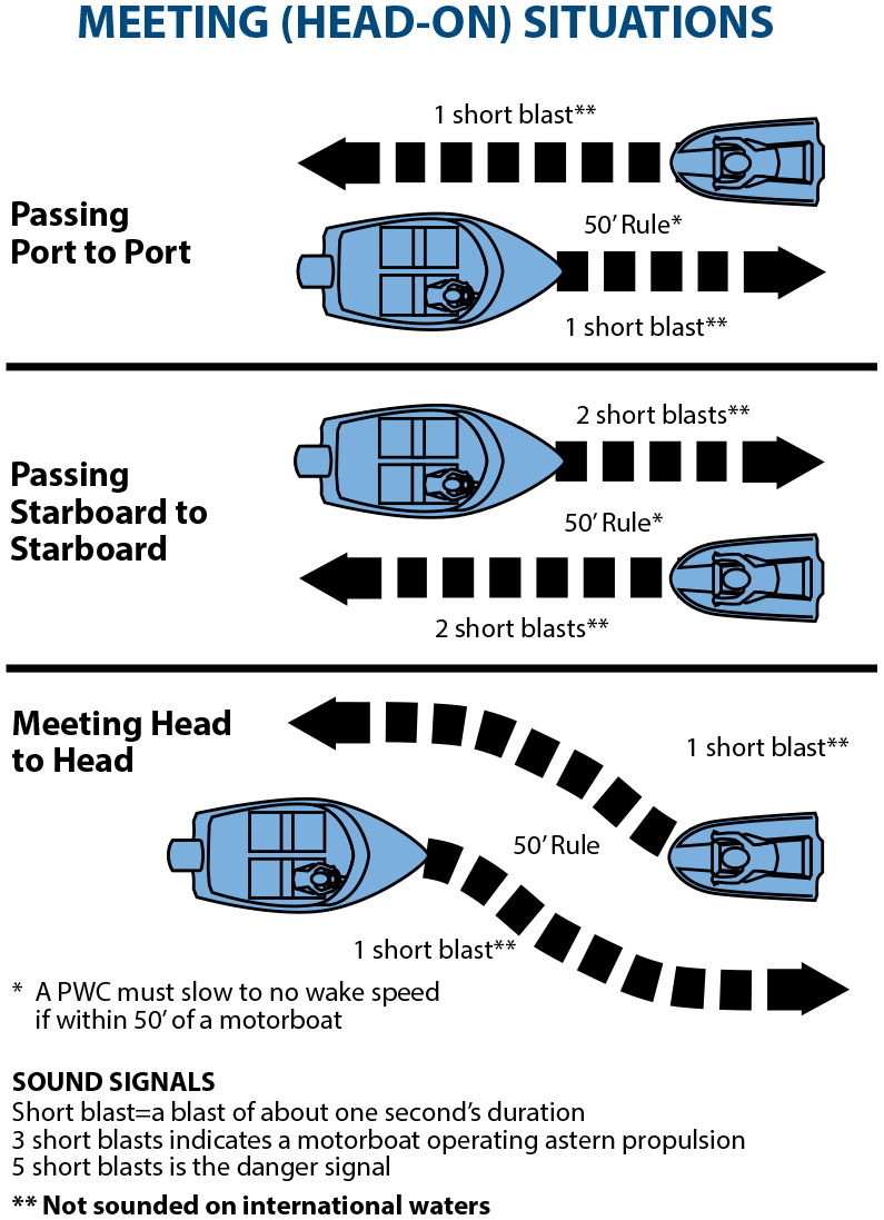 - Practice Good Seamanship — it is the responsibility of every vessel or PWC operator to take all necessary action to avoid collisions. Such action should be taken in ample time to avoid a collision and at a safe distance from other vessels.