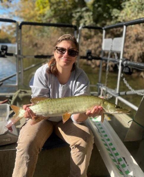 Les pêcheurs qui cherchent à attraper un maskinongé sur le cours inférieur de la New River à l'adresse 2025 devraient avoir de bonnes chances d'en attraper un. Les efforts d'échantillonnage annuels sur le site 2024 montrent la présence continue de poissons de la classe d'âge des géniteurs 2021. Lors de l'échantillonnage 2024, ces poissons avaient l'âge3 et mesuraient environ 28-32 pouces. Les efforts d'échantillonnage précédents sur 2023 ont également révélé une cohorte relativement importante produite sur 2022. Au moment de l'échantillonnage sur 2024, ces jeunes maskinongés mesuraient environ 25-28 pouces. Les pêcheurs peuvent encore cibler un bon nombre de grands maskinongés adultes, bien que le nombre de grands poissons ait diminué au fur et à mesure que les poissons plus âgés continuent de vieillir. Les résultats préliminaires de l'échantillonnage effectué sur le site 2025 montrent que les poissons de la classe d'âge 2021 sont maintenant d'une longueur de 35+ pouces et donneront aux pêcheurs l'occasion d'attraper des poissons plus grands au fur et à mesure qu'ils grandiront et atteindront leur maturité dans le système.