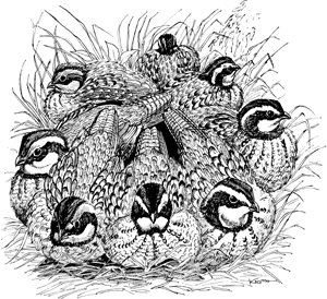 Le perchage est probablement la seule activité du colin où une couverture aérienne dense n'est généralement pas nécessaire. C'est ce que montrent les rapports sur l'utilisation des chaumes de blé, des zones récemment brûlées et des champs de haricots récoltés pour se percher. Apparemment, le camouflage des oiseaux et leur immobilité lorsqu'ils se perchent éliminent le besoin de se couvrir au-dessus de leur tête. La vue dégagée vers le ciel permet également aux oiseaux de s'envoler librement dans l'obscurité si nécessaire. Les gîtes sont le plus souvent situés sur un sol nu ou légèrement couvert de duvet. Une surface nue retient la chaleur absorbée pendant la journée et offre ainsi un site de perchage plus chaud pour commencer la soirée. Pour la même raison, les perchoirs sont souvent situés sur une pente sud ou sud-ouest où le soleil de l'après-midi est direct et a réchauffé le sol. Les cailles préfèrent se percher à mi-pente ou à des altitudes plus basses, probablement pour éviter les vents qui soufflent plus près d'une crête.