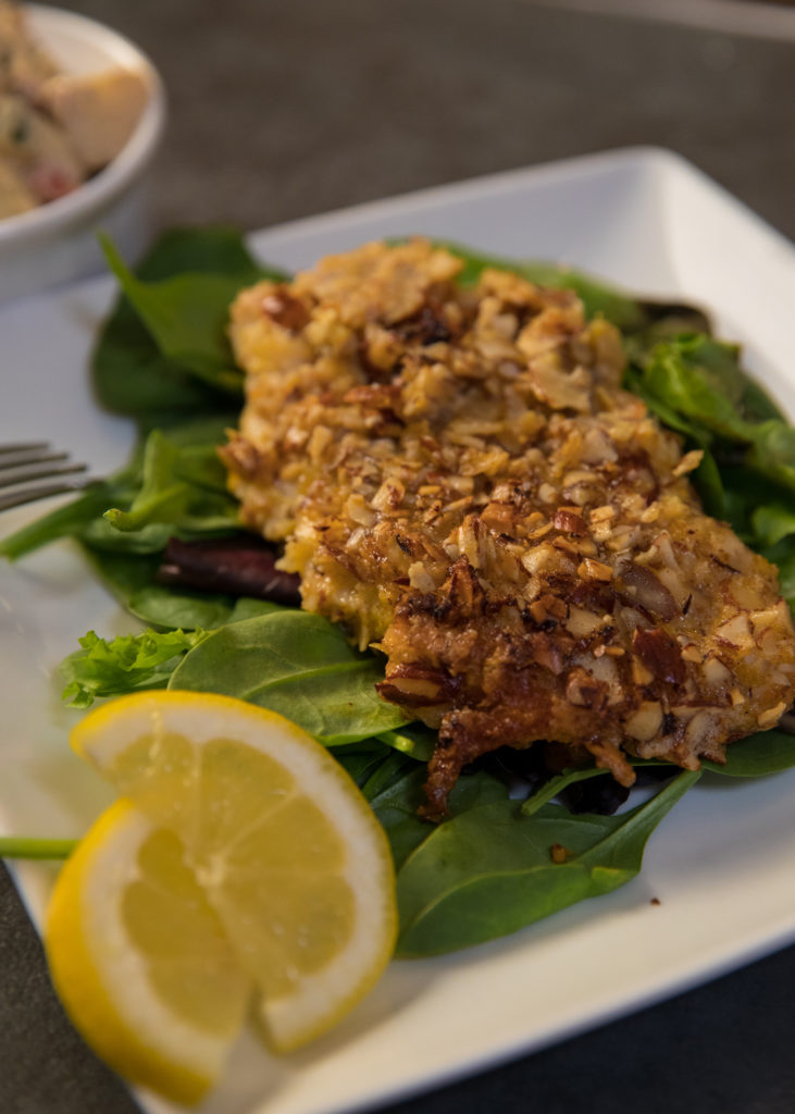 Une autre façon d'agrémenter un poisson qui se nourrit au fond de l'eau. Mais qui n'aime pas le poisson-chat ? Ce n'est peut-être pas le poisson à viande blanche le plus frais, mais il peut nourrir toute la famille et il est amusant à attraper. Surtout en Virginie, qui est une destination de choix pour la pêche au poisson-chat. La saveur d'amande et le zeste de citron frais sont les éléments qui rendent cette recette légère et rafraîchissante. De plus, les amandes concassées constituent une alternative plus saine à la panure pour la friture.