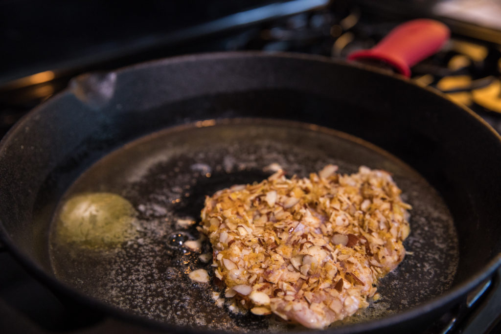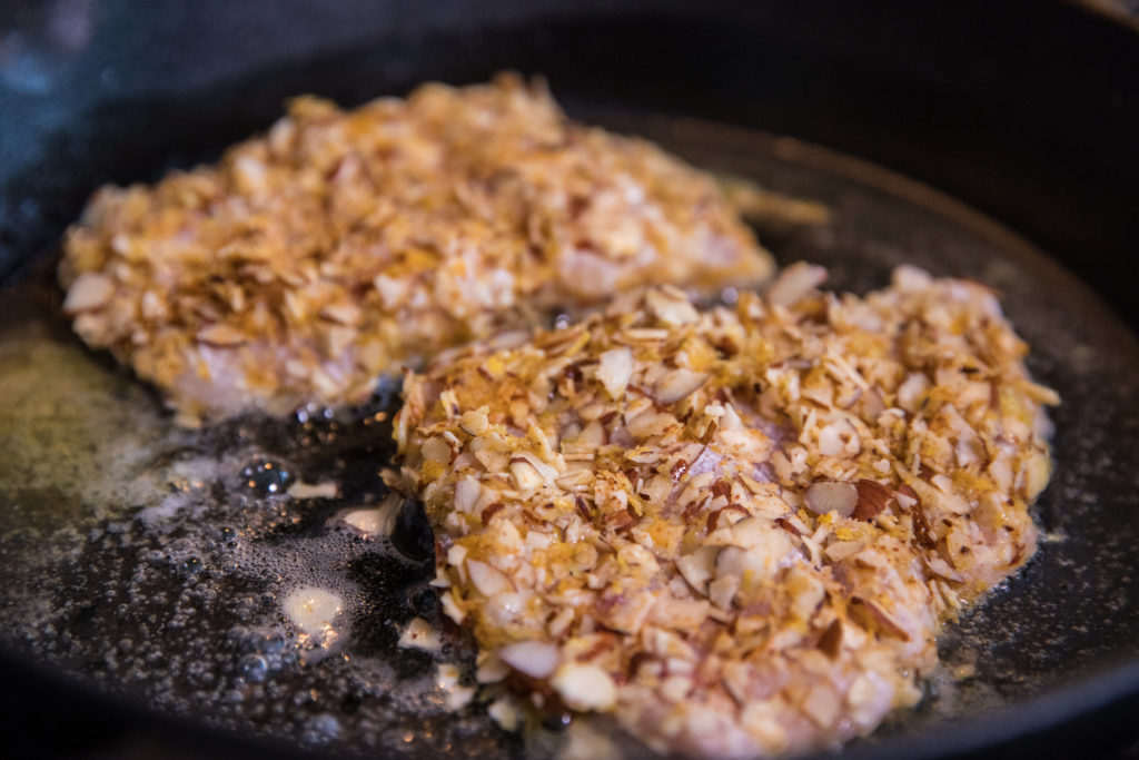 Mélangez les amandes, le zeste de citron, le sel et les poivrons dans un bol peu profond. Roulez un filet à la fois dans la farine, puis trempez-le dans l'œuf battu et pressez immédiatement chaque côté dans le mélange d'amandes, en tournant pour enrober les deux côtés. Dans une grande poêle, faites chauffer le beurre et l'huile jusqu'à ce qu'ils soient chauds. Réduisez le feu et faites sauter les filets à feu moyen jusqu'à ce qu'ils soient croustillants et bruns, soit environ 4 minutes de chaque côté.