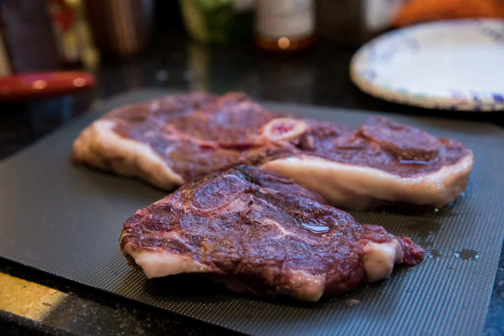 - Nettoyez les steaks d'ours et coupez-les en morceaux.