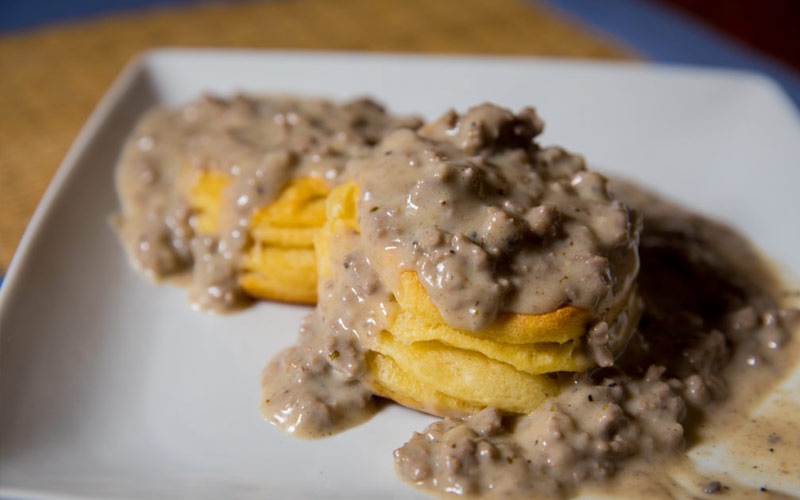 Sauce à la saucisse du cerf au petit-déjeuner avec des biscuits