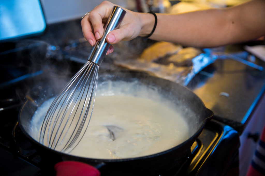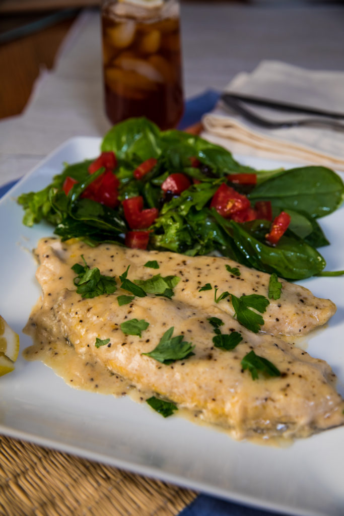 Un classique. Nous connaissons tous cette recette réconfortante dont nous sommes certains qu'elle plaira à tout le monde. Enrobée d'une sauce crémeuse au fromage et cuite au four jusqu'à la perfection, la truite mornay est une recette intemporelle qui ne peut être vaincue. C'est rapide, simple et facile. Je vous recommande de relever la sauce avec des flocons de piment rouge ou quelque chose de piquant pour donner un petit coup de fouet. Servez chaud avec un légume d'accompagnement rôti ou une purée de pommes de terre à l'ail.