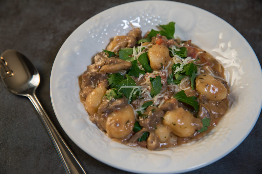 La recette traditionnelle prévoit de la saucisse italienne, mais chaque fois que je peux remplacer du gibier sauvage par de la viande achetée en magasin, je le fais.. Je pense qu'il n'y a rien de plus amusant que de faire preuve de créativité avec du gibier sauvage. Il s'agit d'une recette classique du dimanche soir, d'un plat réconfortant qui vous colle à la peau. Les gnocchis cuits dans le bouillon de poulet, les épices et la viande qui mijotent avec le fromage en font toute la saveur. Si vous aimez le fromage, cette recette est faite pour vous. De plus, si vous souhaitez supprimer les glucides transformés comme les pâtes, les gnocchis constituent une excellente alternative.