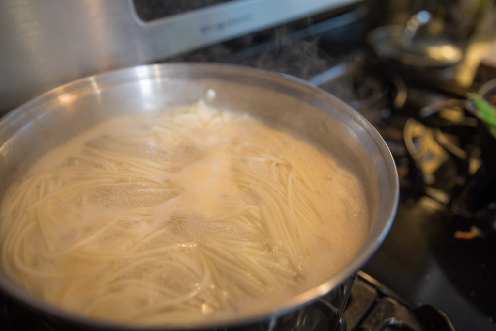 - Égoutter les nouilles et les mettre de côté.