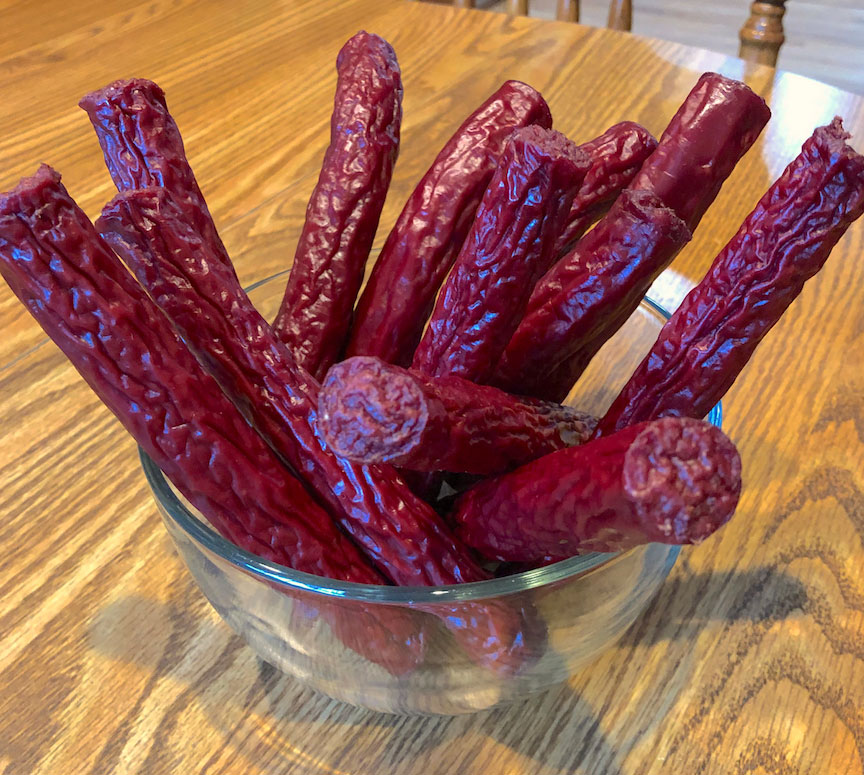 Les bâtonnets Snackin' de venaison sont délicieux et constituent un excellent en-cas à emporter à la chasse ou à la pêche. Il est important de garder la viande de chevreuil et de porc très froide pendant que vous la coupez, la mélangez et la broyez.