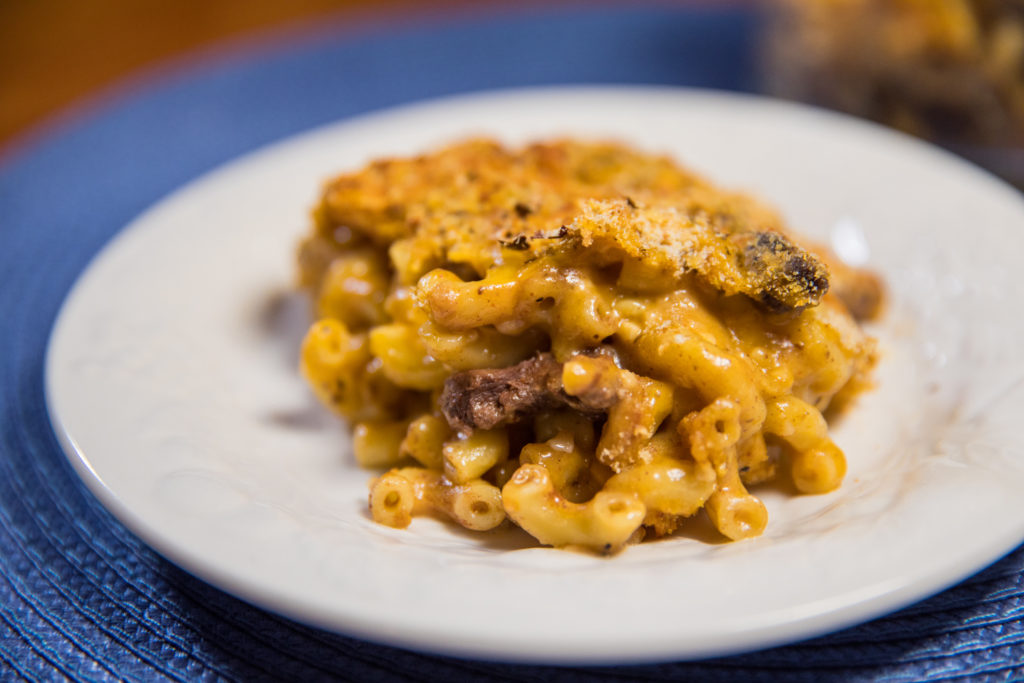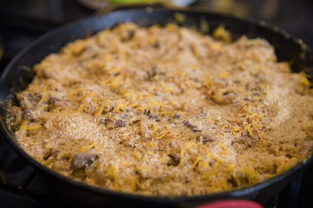 - Recouvrez les macaronis de chapelure (mais ne les recouvrez pas complètement) et mettez-les au four pendant 20 minutes à 350 degrés. Mélangez/poussez un peu les miettes pour les enrober de fromage et les rendre croustillantes.