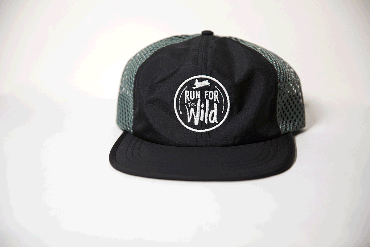 Le graphisme Run for the Wild est cousu avec du fil phosphorescent qui s'illumine dans l'obscurité. Ce chapeau de course est de taille unique avec une sangle arrière à réglage rapide. Le prix comprend les frais d'expédition et tous les bénéfices sont destinés à nos initiatives de subvention.