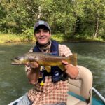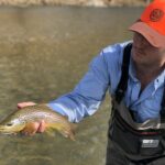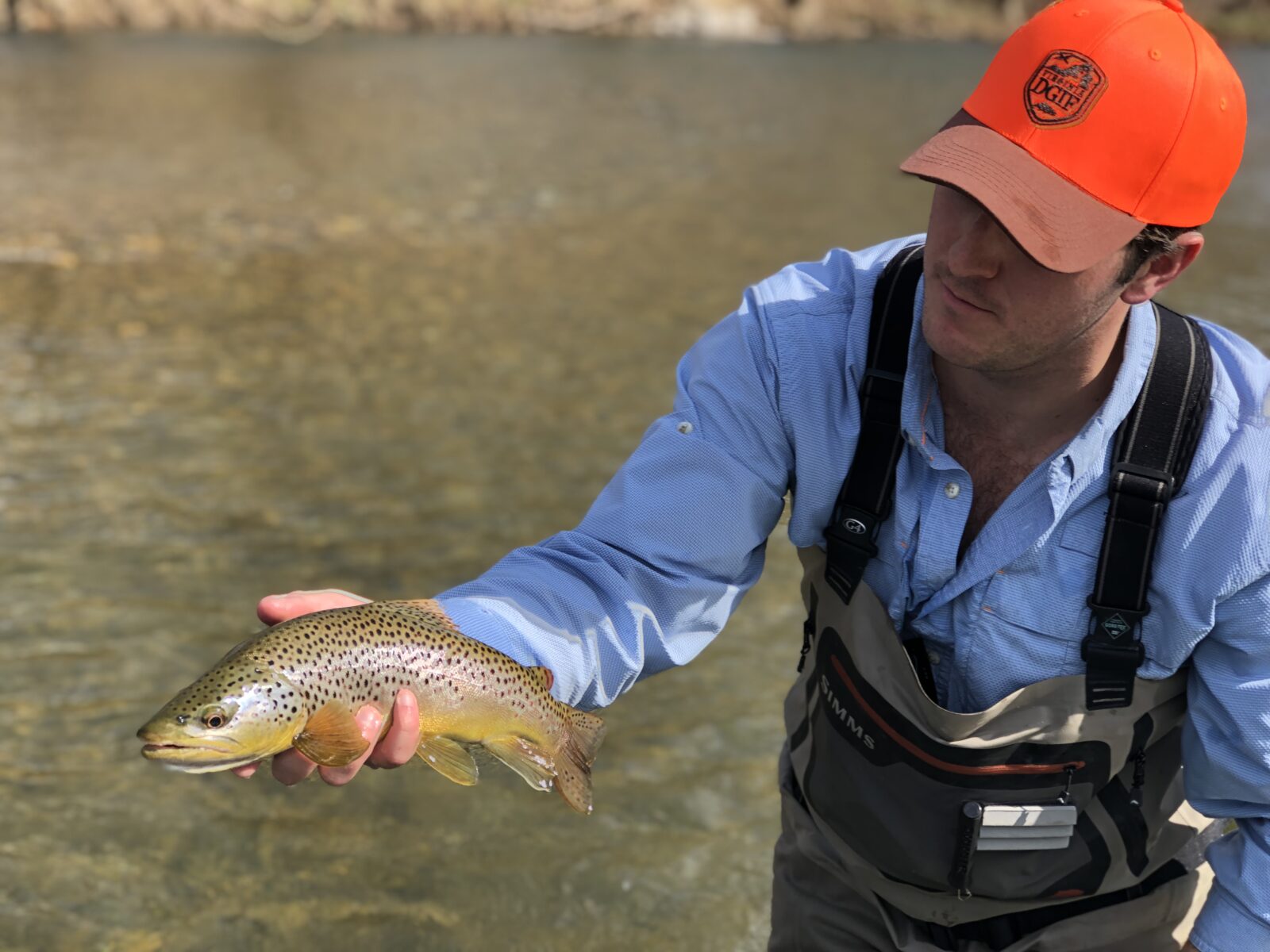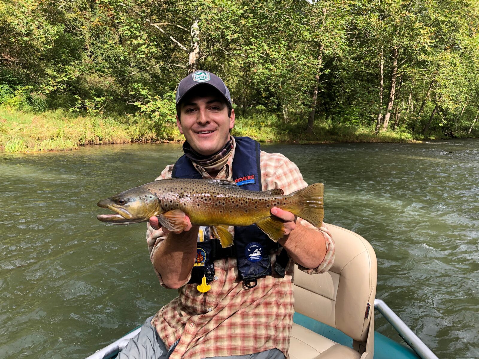 Alex McCrickard, coordinateur de l'éducation aquatique du DWR, avec une truite brune 21" pêchée au streamer à l'automne sur la Jackson River tailwater.