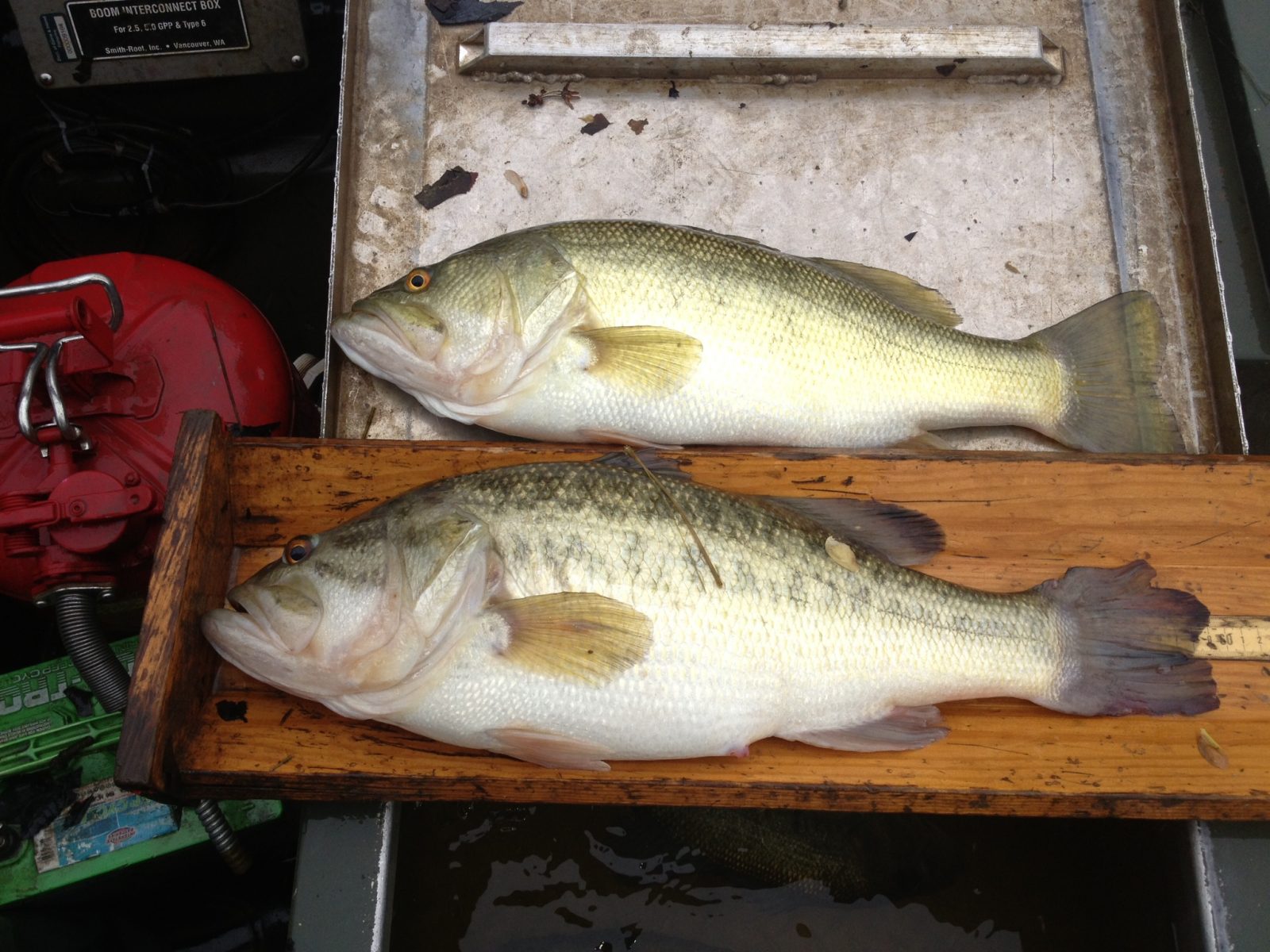 Les biologistes de la pêche du DWR, Steve Reeser & Robbie Willis, avec les résultats d'une journée d'échantillonnage sur le lac Anna.