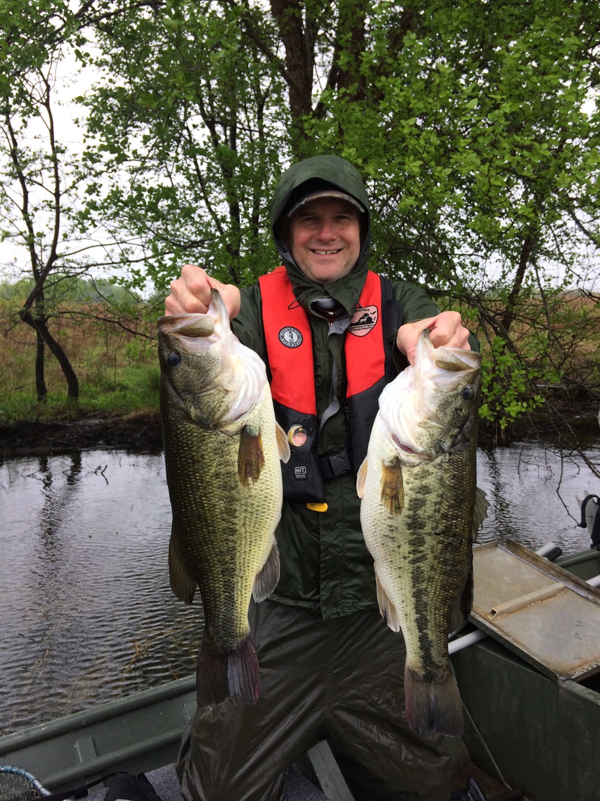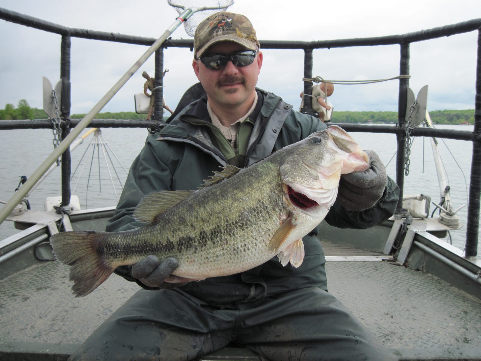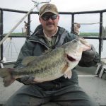 Steve Owens, biologiste de la pêche au DWR, avec un achigan à grande bouche trophée rencontré lors d'une pêche électrique au lac Anna.