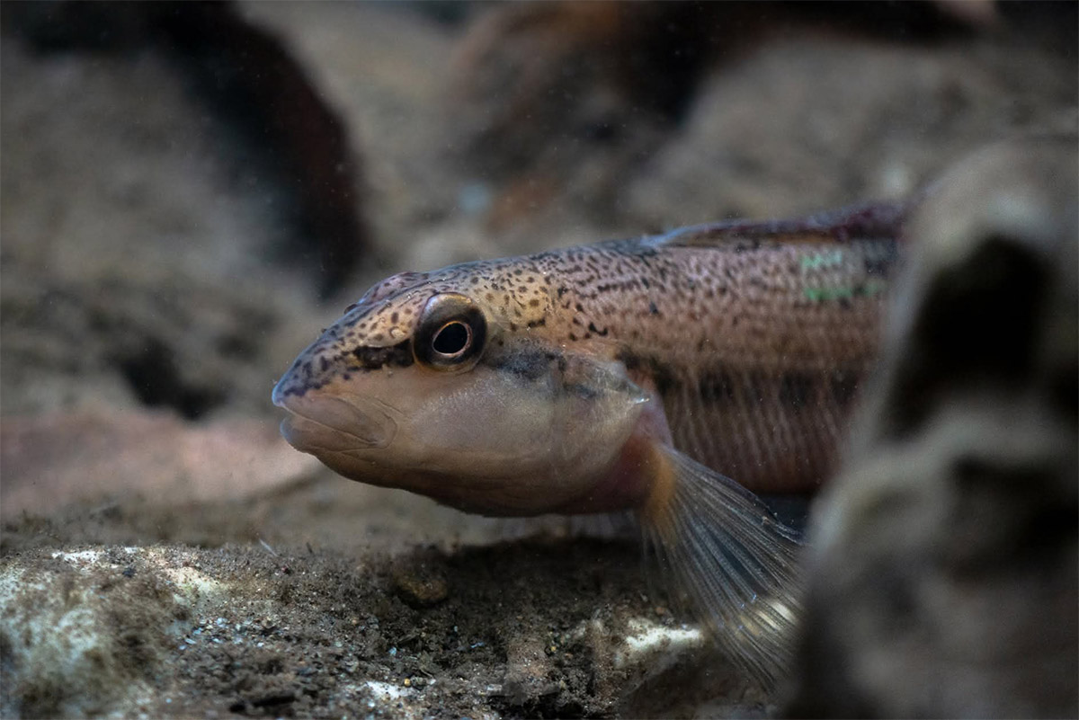 Un Ashy Darter chez lui au fond du ruisseau. Photo prise par ©Maddie Cogar – DWR