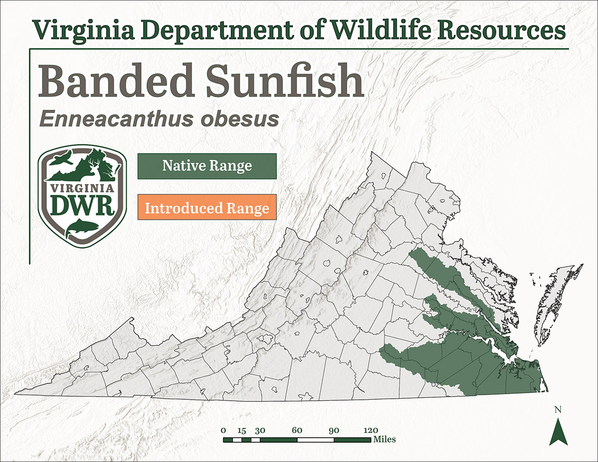 Le poisson lune est originaire de la plaine côtière du sud-est de la Virginie. Ils se trouvent dans les bassins versants de York, James et Chowan.