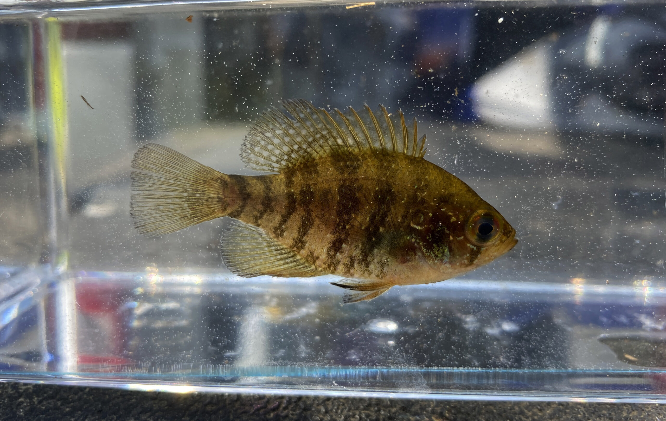 Taille : Dans les eaux de Virginie, le crapet-soleil rayé dépasse rarement 3 pouces de longueur.