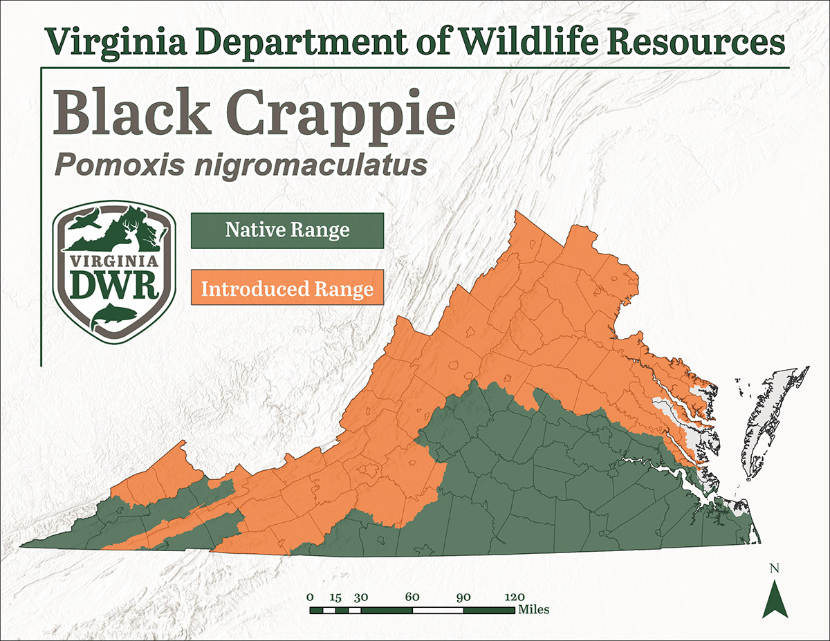 La marigane noire est originaire d'une grande partie du sud-est de la Virginie et du bassin versant du Haut-Tennessee, dans le sud-ouest de la Virginie. En tant qu'espèce prisée pour les loisirs et la consommation, la marigane noire a également été introduite dans une grande partie du Commonwealth.