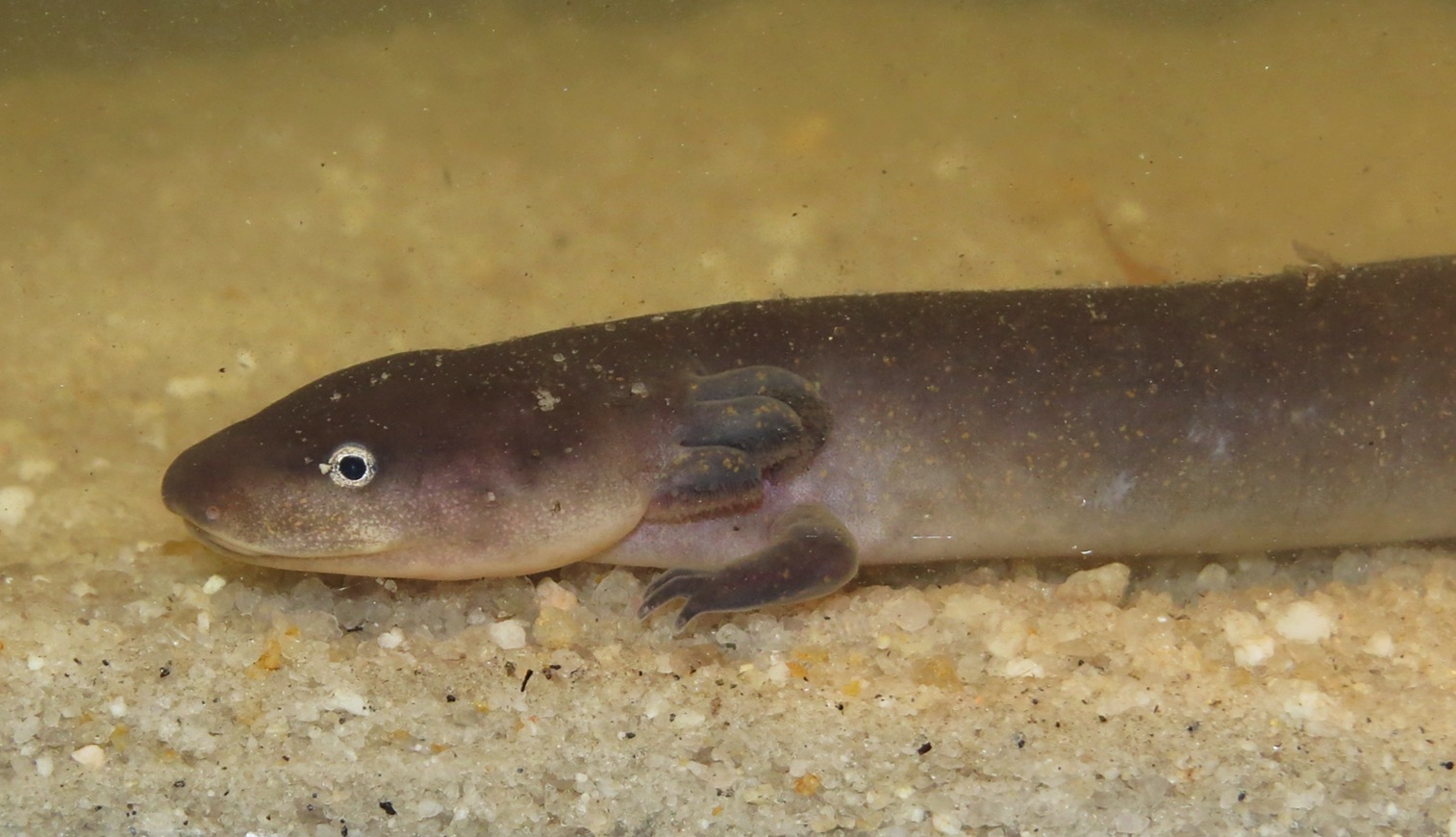 Tous les stades du cycle de vie sont aquatiques ; on ne les trouve jamais sur la terre ferme. Les femelles pondent 15-55 œufs sous des objets dans le substrat. Des larves ont été trouvées en avril et en novembre. Ils se nourrissent d'invertébrés aquatiques. Les prédateurs probables sont les poissons, les échassiers, les loutres et les serpents d'eau.