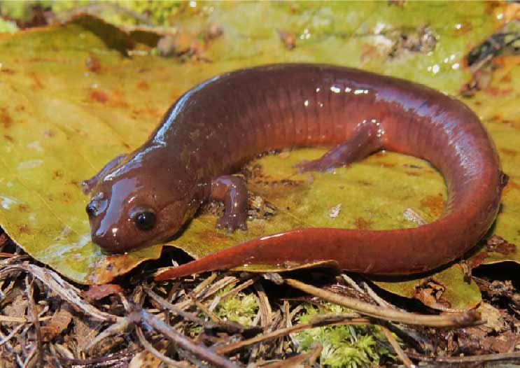 Salamandre de boue (à gauche) et salamandre rouge (à droite). © Lisa Powers