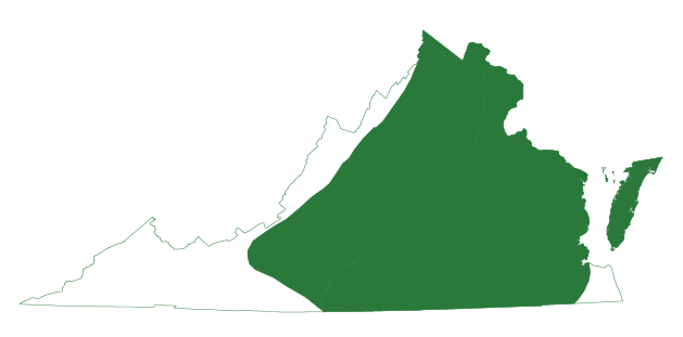 Principalement présent dans les sols sablonneux de la plaine côtière, avec des signalements épars dans le Piémont et les Blue Ridge Mountains.