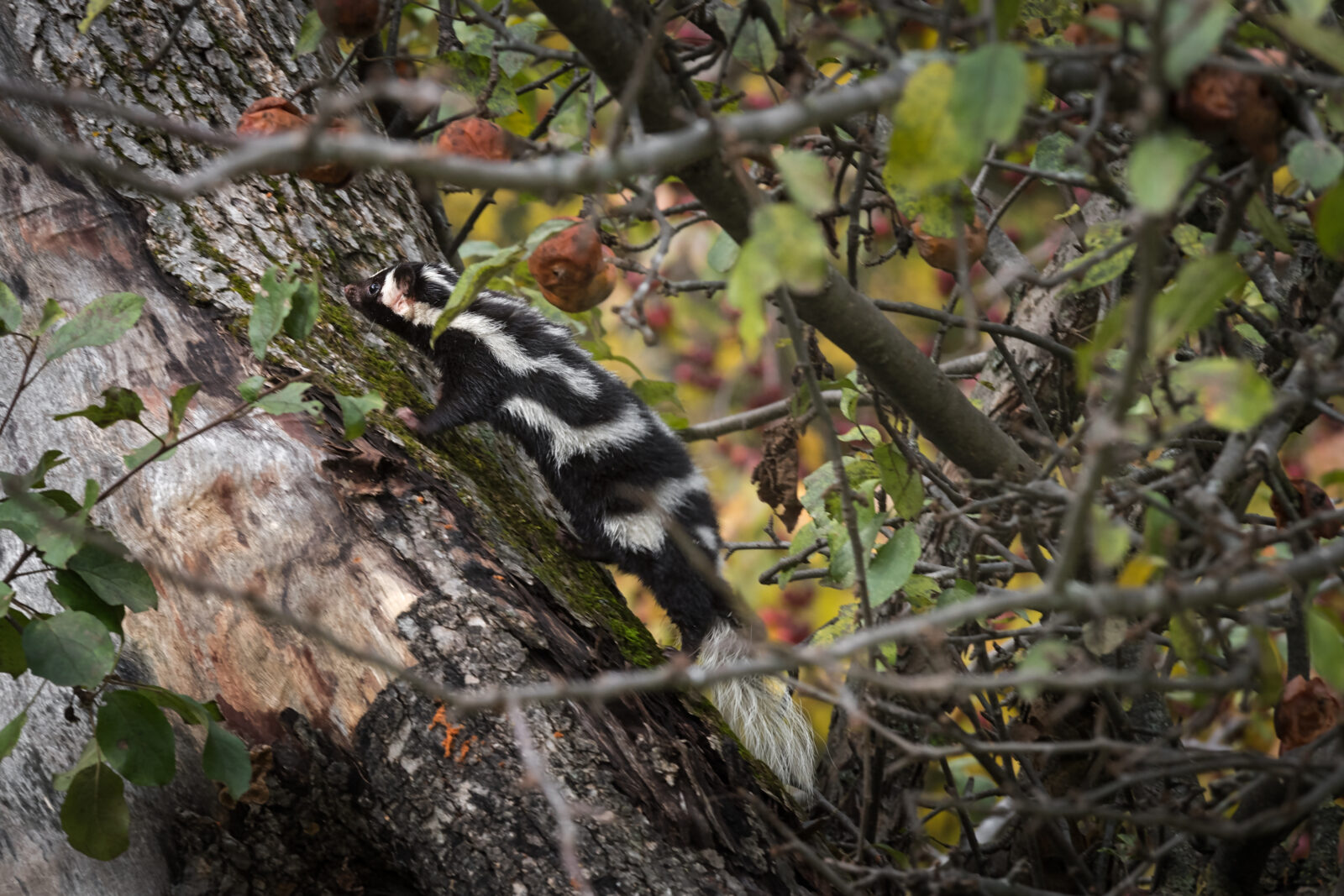 En plus de ce mécanisme de défense unique, la moufette tachetée est la seule connue pour grimper aux arbres !