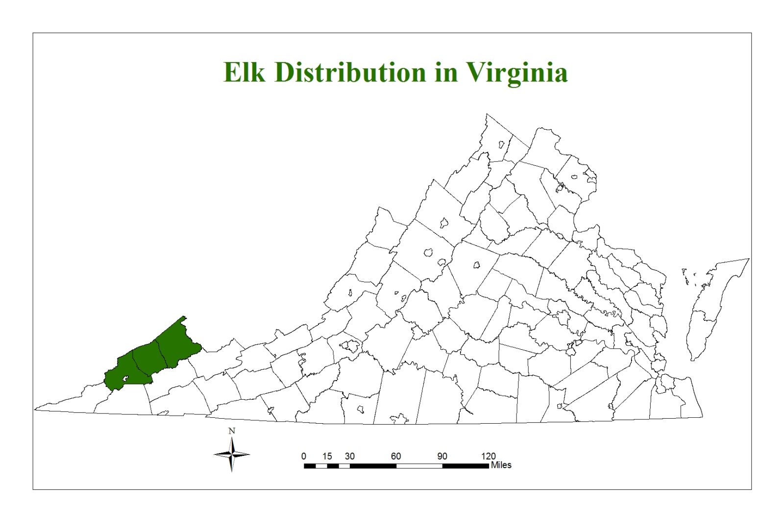 Les populations d'élans restantes en Amérique du Nord sont largement limitées à l'ouest des États-Unis. Les efforts de transplantation, tels que ceux réalisés en Virginie, ont permis de créer de petites populations dispersées dans le centre et l'est des États-Unis. En Virginie, les élans ne sont présents que dans le sud-ouest de l'État, sur le plateau de Cumberland, ce qui représente une fraction mineure de leur aire de répartition historique dans le Commonwealth. Ces élans ne migrent pas comme les populations d'élans de l'Ouest en raison de la qualité exceptionnelle du fourrage dans cette région de la Virginie (et dans les régions voisines du TN, du KY et du WV).