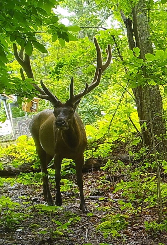Wapiti en velours. Observé dans le comté de Buchanan, en Virginie. Photo de David Kalb/ DWR.