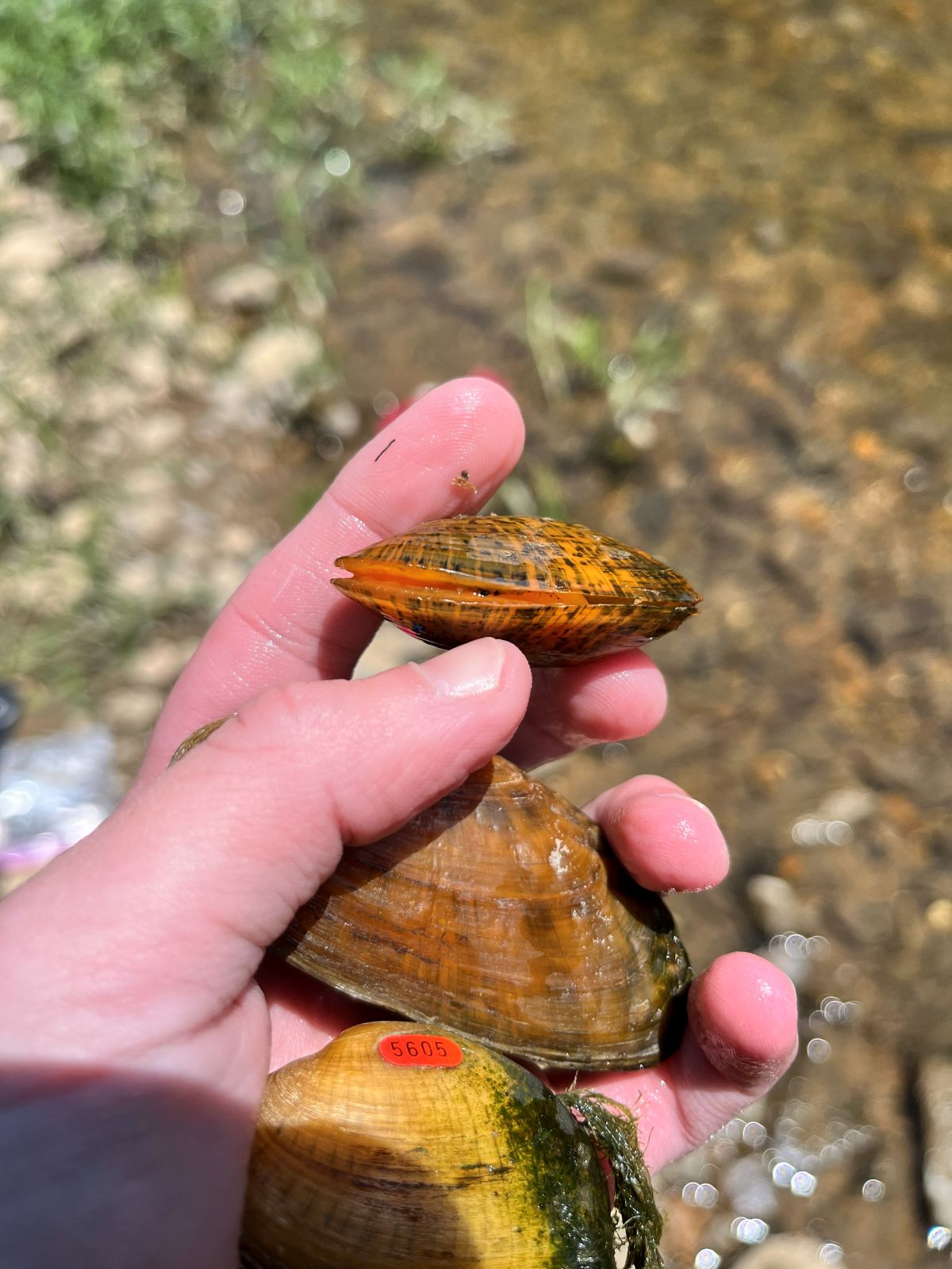 Un couple d'Elktoe recapturé lors d'une étude de surveillance. Photo par ©Kayla Howard - DWR