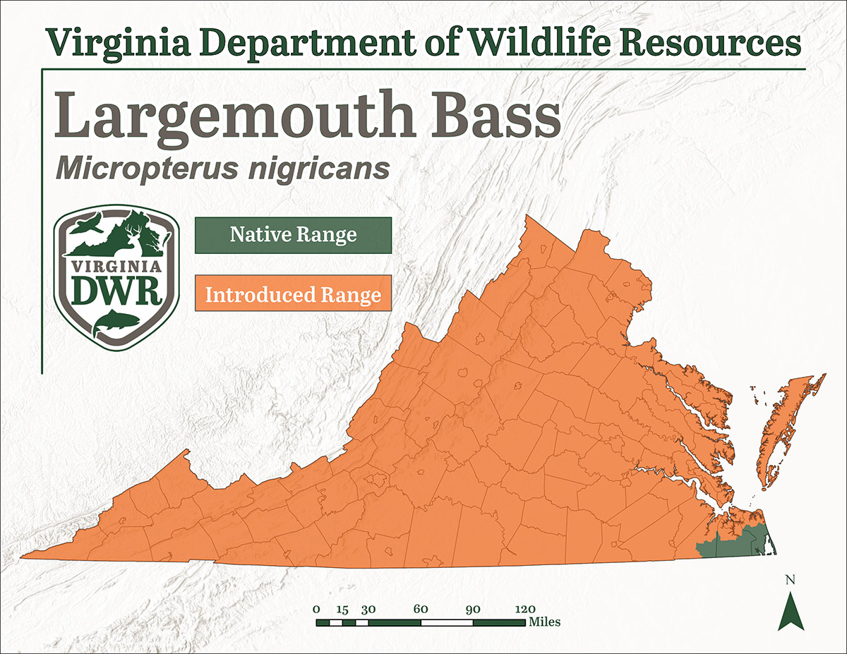 L'achigan à grande bouche est l'un des poissons de sport les plus populaires aux États-Unis, et on le trouve dans toute la Virginie. Ils sont originaires d'une petite partie du bassin d'Albermarle dans le sud-est de la Virginie.