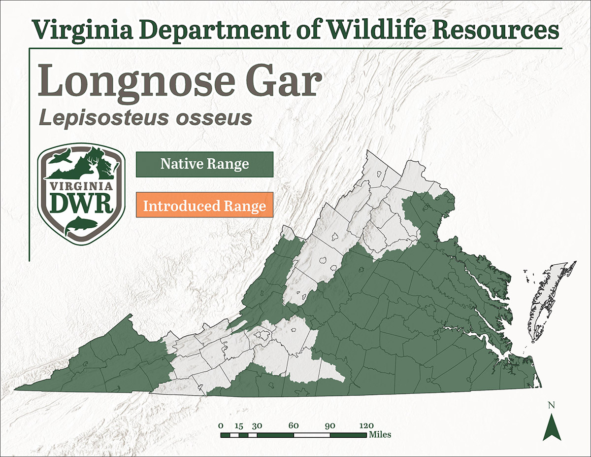 En Virginie, le Garrot à long bec se développe dans les cours d'eau à faible gradient avec des bassins profonds et des coulées, des réservoirs et des estuaires à marée. Le lépisosté à long nez se tient dans les zones ombragées avec des branches d'arbres en surplomb et des structures submergées. Le lépisosté long est un respirateur obligatoire, ce qui lui permet de survivre dans les eaux saumâtres et dans les zones à faible teneur en oxygène dissous. Leurs adaptations leur ont permis de survivre à de nombreux changements climatiques drastiques. Leurs origines remontent au moins à la période du Crétacé (100+ millions d'années).