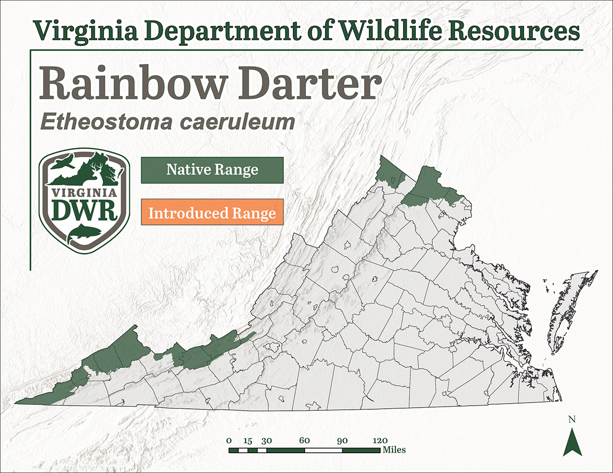 L'aire de répartition du dard arc-en-ciel est limitée en Virginie, puisqu'on ne le trouve que dans certaines zones des bassins versants des rivières Big Sandy, Kanawha, Potomac et Upper Tennessee.