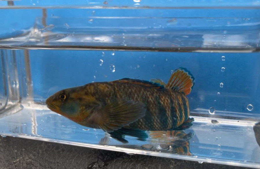 Un dard arc-en-ciel observé par des biologistes dans un bassin de rétention. ©Madison Cogar - DWR
